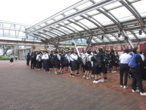集合時間に少し雨が降り始め、少し心配しましたが、みんな時間通りに集合し東京へむけて出発しました。