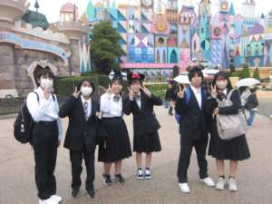 ホーム > 日々の活動の様子 / 2年 【2年生】修学旅行1日目 ディズニーランド ディズニーランドに無事到着しました。 クラス写真を撮影し、班をつくって園内へ! みなさんとても楽しそうでした。 タグ:修学旅行 関連投稿 日々の活動の様子 【第3学年】修学旅行 出発式 日々の活動の様子 修学旅行 日々の活動の様子 【修学旅行】解散式 日々の活動の様子 修学旅行 日々の活動の様子 【第3学年】修学旅行 志摩自然学校 シェルクラフト(前半) 日々の活動の様子 【2年生】修学旅行1日目 防災学習 前の投稿 【2年生】修学旅行1日目 出発式・あおぞら号・新幹線 次の投稿 【2年生】修学旅行2日目 1組