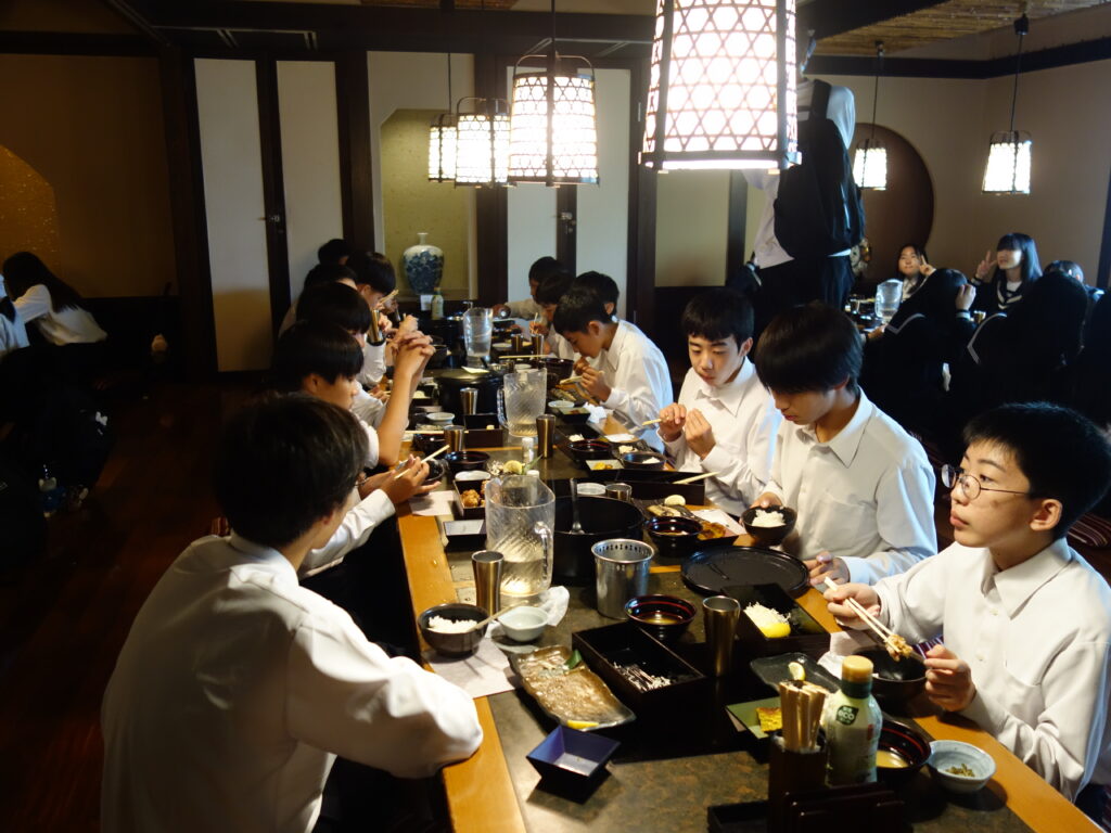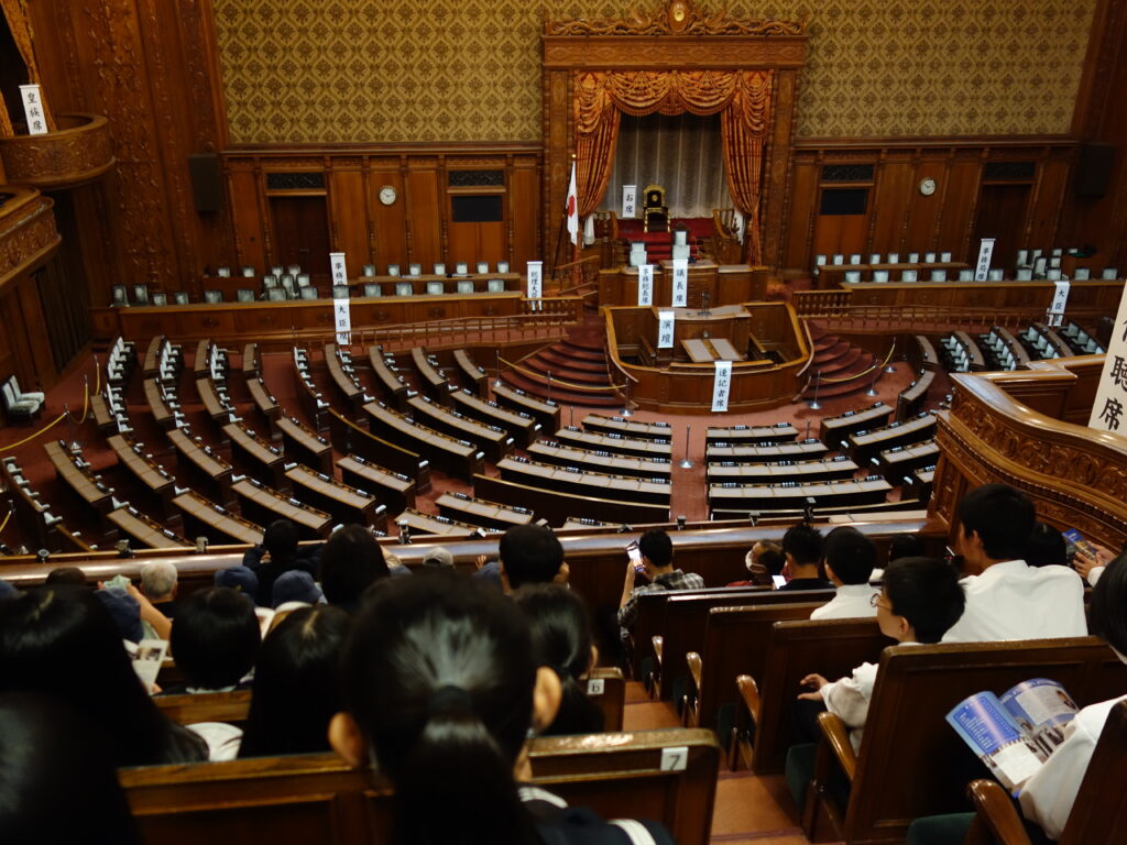 修学旅行2日目、2組は午前中に国会議事堂(参議院)を見学しました。重厚な建屋の中に入って本会議場の傍聴席に座り、説明を聞きました。土風炉銀座でのサバの塩焼き定食タイムをはさんで、有明方面に移動し、そなエリア東京にてクイズ形式の防災学習をおこなったあと、日本科学未来館で展示見学を楽しみました。各研修地では時間もたっぷりありましたが、あっという間に過ぎていきました。移動中のバスから見える東京の車窓も、ガイドさんの詳しくて楽しい説明でじっくり楽しめました。