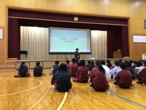講話の中では、三雲中付近の最大震度や津波の想定について知ることができました。発災確率も上昇していると聞き、日々の防災意識を高めていくことが大切だと思いました。
